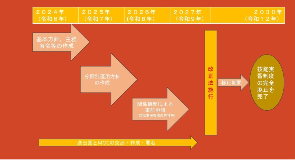 育成就労制度は2024年に閣議決定され、それから3年後の2027年の施行を目指して現在調整が行われています。